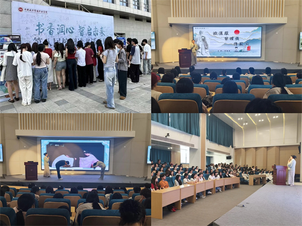 当天下午,我校特邀庐州家礼文化非遗代表性传承人刘桂芬开展《“识汉服、习礼仪、传薪火”共赴霓裳之约》专题讲座。讲座中,刘桂芬老师以汉服的起源为开篇,深入剖析了汉服从秦汉至明清时期的特征与演变特点,详细阐述了华夏通用之礼仪,包括仪表、仪态、相见等礼仪动作。在场学生认真聆听,积极参与,深刻体悟中华礼仪之邦的精神内核。